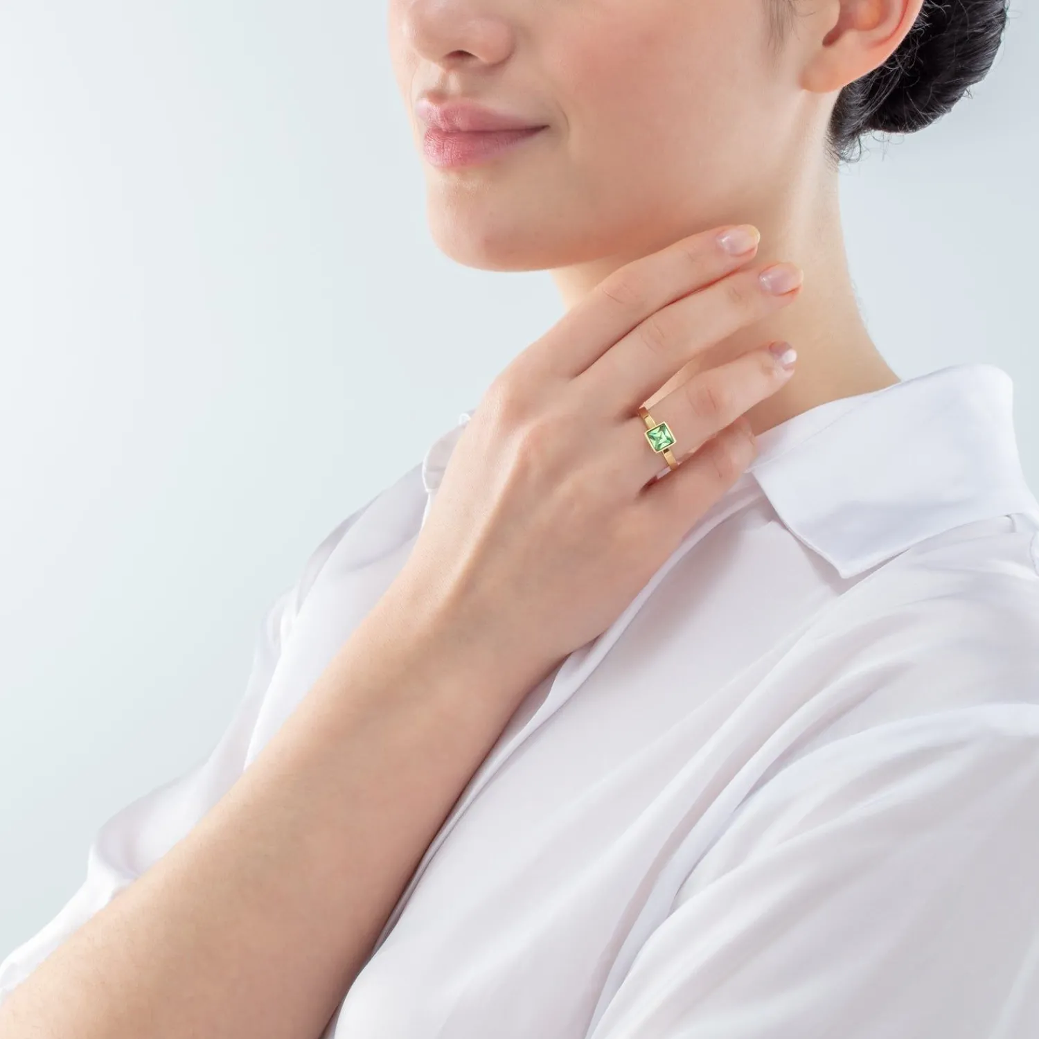 Der atemberaubende, brillante, quadratische Ring in einer trendigen Kombination aus Gold und Grün sorgt für einen Hauc…