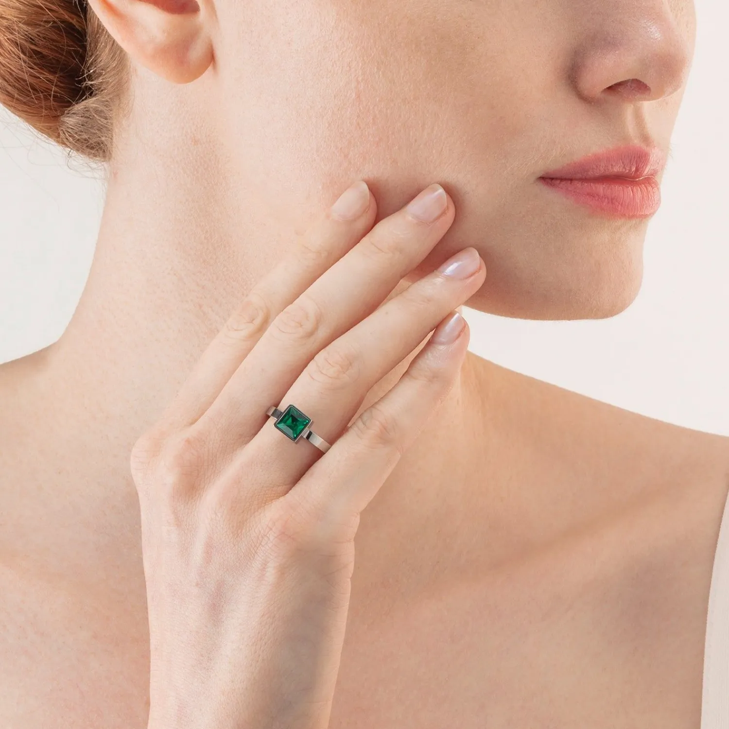 Der atemberaubende, brillante, quadratische Ring in leuchtendem Dunkelgrün und Silber verleiht jedem Anlass einen Hauch…