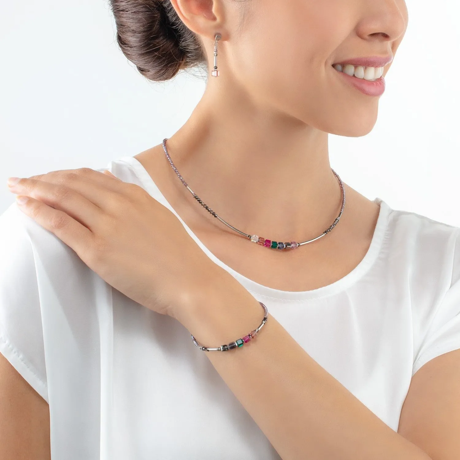 COEUR DE LION Cube Story Minimalistisches funkelndes Armband mehrfarbig im Jugendstil- Mix&And&Match-Armbänder