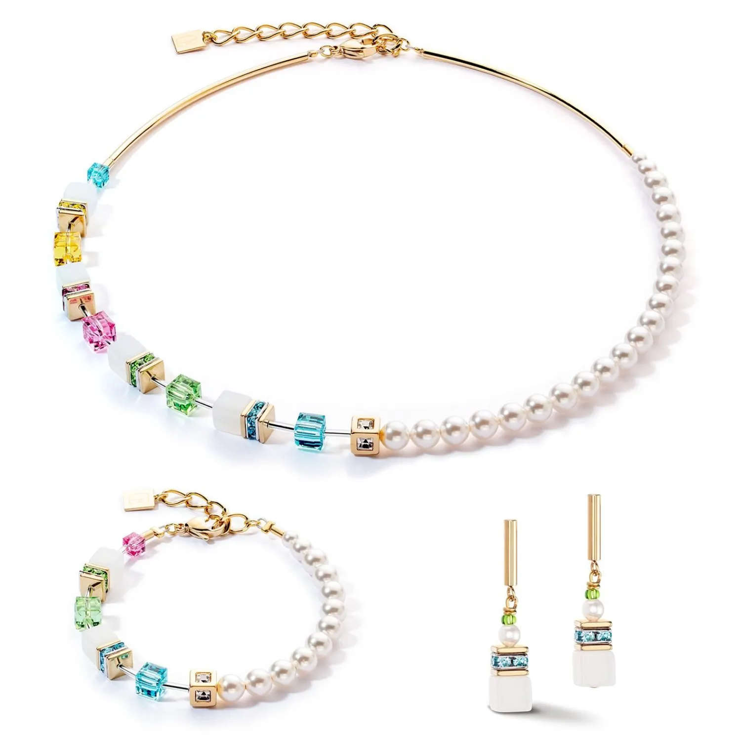 Zu kräftigen, frischen, frühlingshaften Farbtönen gesellt sich eine elegante Perle. Ein ausdrucksstarkes Design voller Farbe und Lebensfreude – perfekt für jeden Frühlings- oder Sommer-Look. Ergänzen Sie diesen Stil mit der festlichen mehrfarbigen Halskette und dem Armband von Geocube® Fusion.