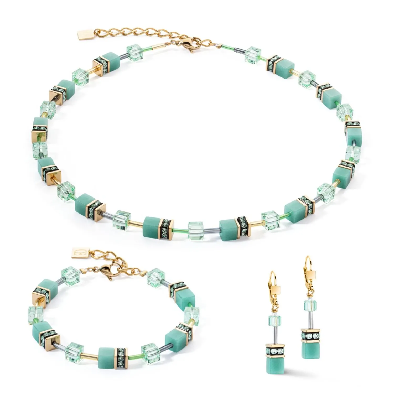 COEUR DE LION Geocube® Iconic Mono Gold Ohrringe Grün- Geocube® Halsketten