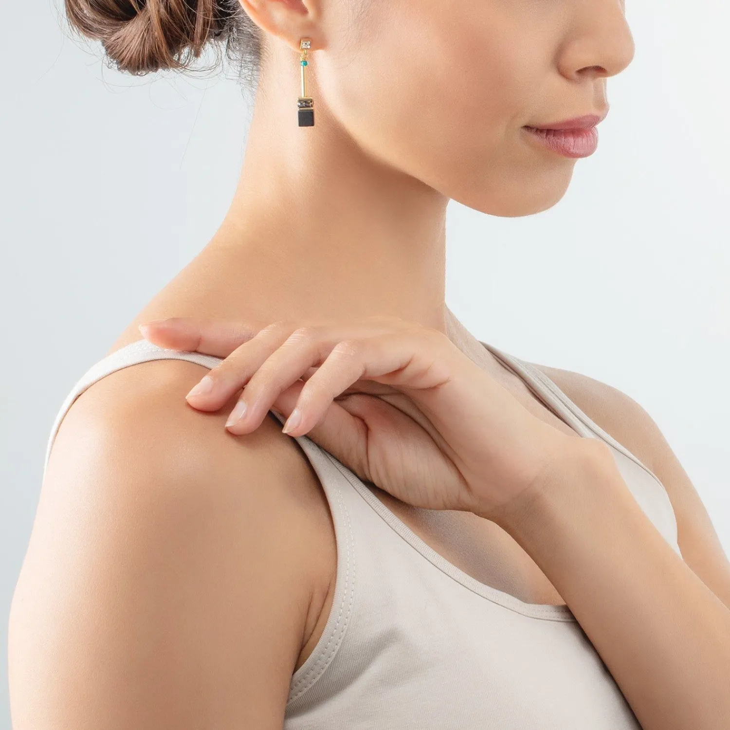 Atemberaubende Geocube®-Ohrringe mit einem matten Onyxwürfel und funkelnden Kristallen. Mit oder ohne passendem Armband und Halskette getragen, werden sie garantiert alle Blicke auf sich ziehen.
