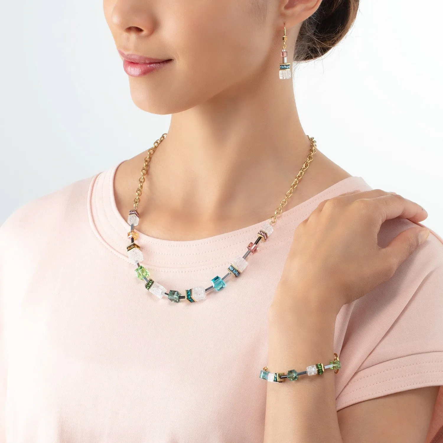 Das goldene und mehrfarbige Geocube® Iconic Precious Chain-Armband ist eine stilvolle Ergänzung zu Ihrem Outfit, entweder getragen mit Halskette und Ohrringen oder einzeln. Es ergänzt die Geocube® Iconic Precious Chain-Serie perfekt und rundet Ihren Look elegant ab.