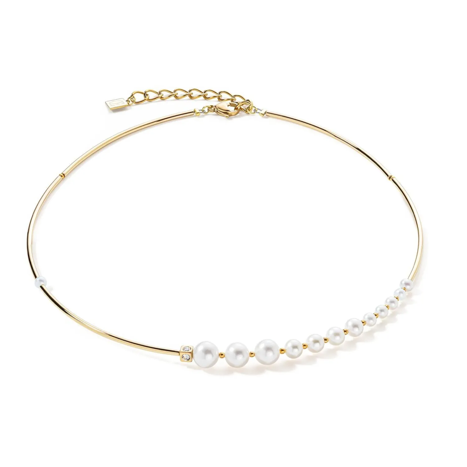 COEUR DE LION Halskette Asymmetrie Süßwasserperlen & Edelstahl Weißgold- Hochzeit