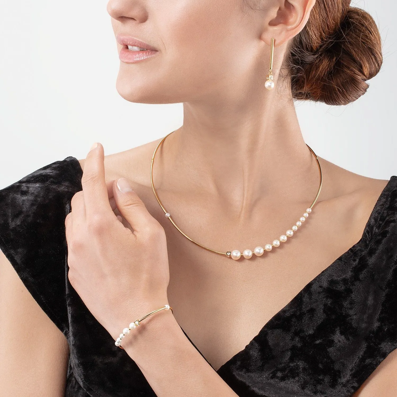 Diese klassische, elegante Halskette besteht aus echten Süßwasserperlen, schimmernden Kristallen in Pavé-Fassung und feingoldenem Edelstahl und wird garantiert alle Blicke auf sich ziehen. Tragen Sie diese bezaubernde Halskette mit den passenden Ohrringen und dem Armband für einen äußerst eleganten Look.