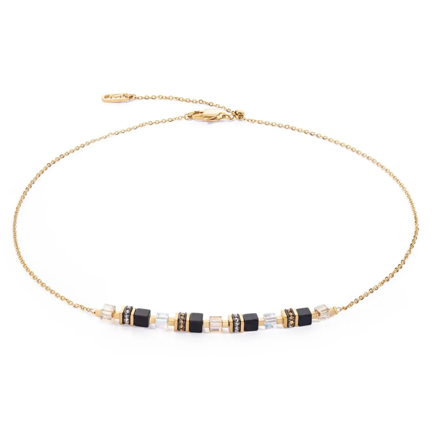 COEUR DE LION Halskette Mini Cubes & Kette Gold-Schwarz- Edelsteinketten