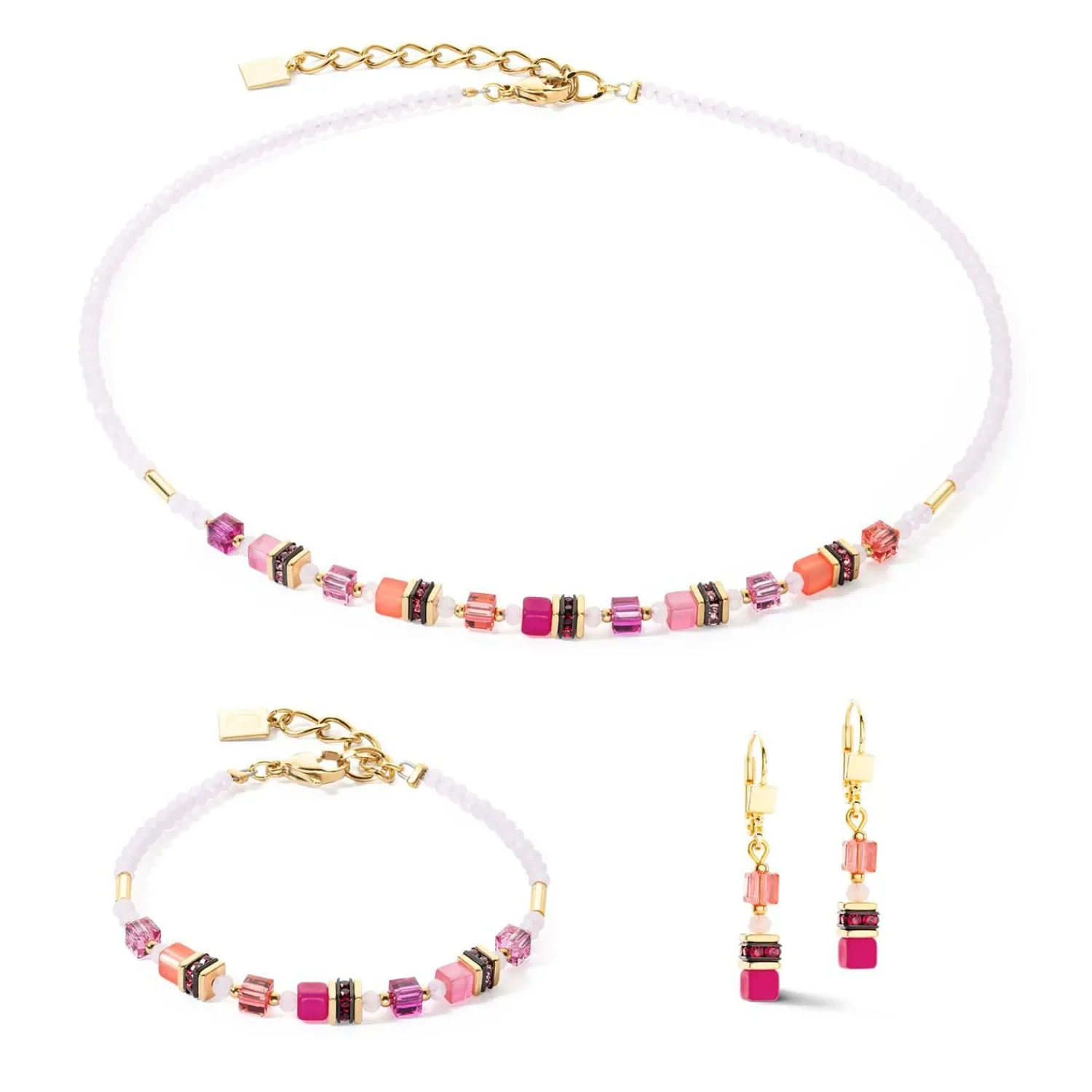 COEUR DE LION Halskette Mini Cubes Magenta- Kristallhalsketten