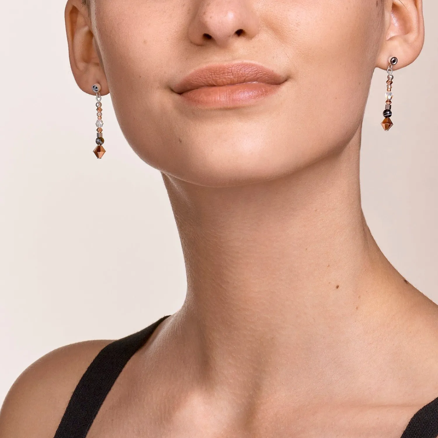 COEUR DE LION Ohrringe Amulett Kleine Kristalle & Gestreifter Onyx Grau-Kristall- Edelsteinohrringe