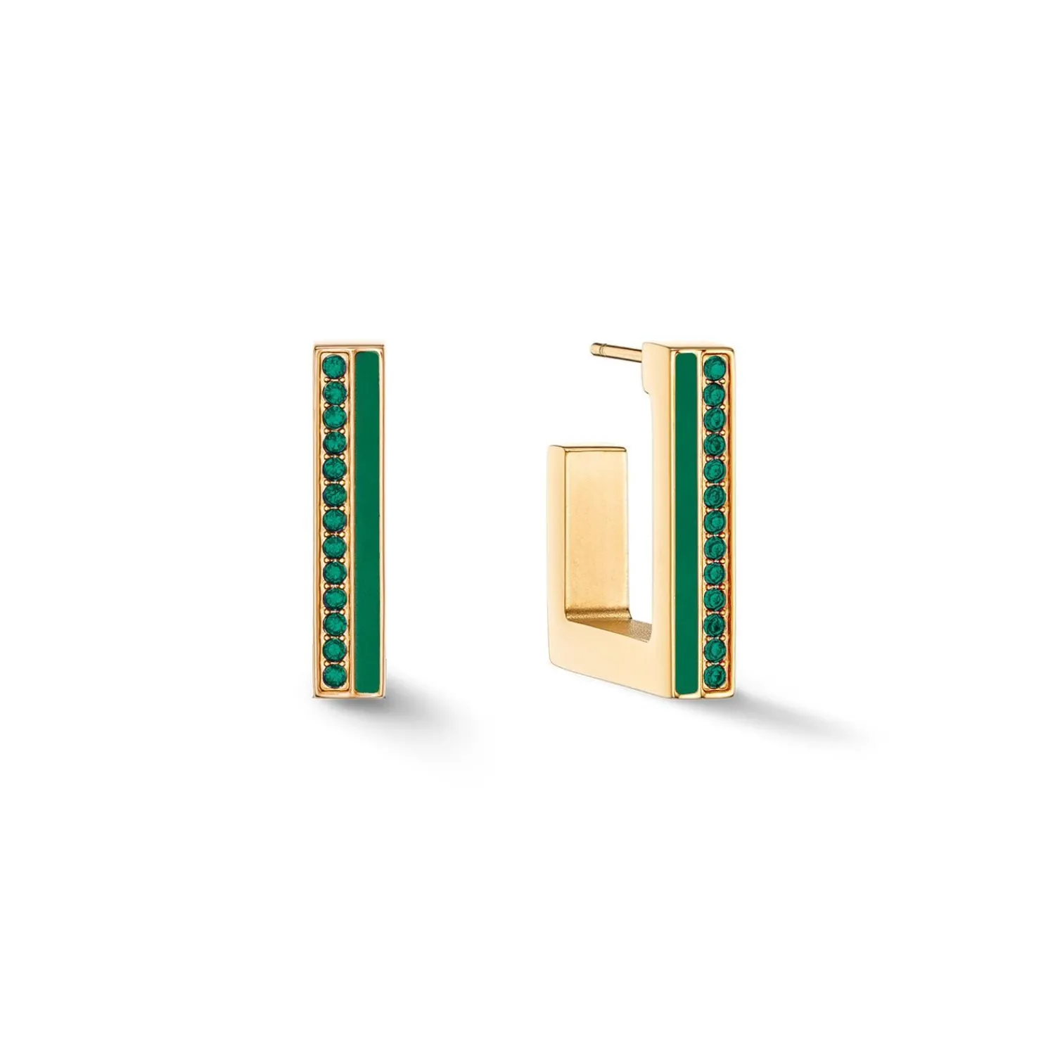 COEUR DE LION Ohrringe Creolen Quadratische Streifen 20 Gold-Grün- Creolen