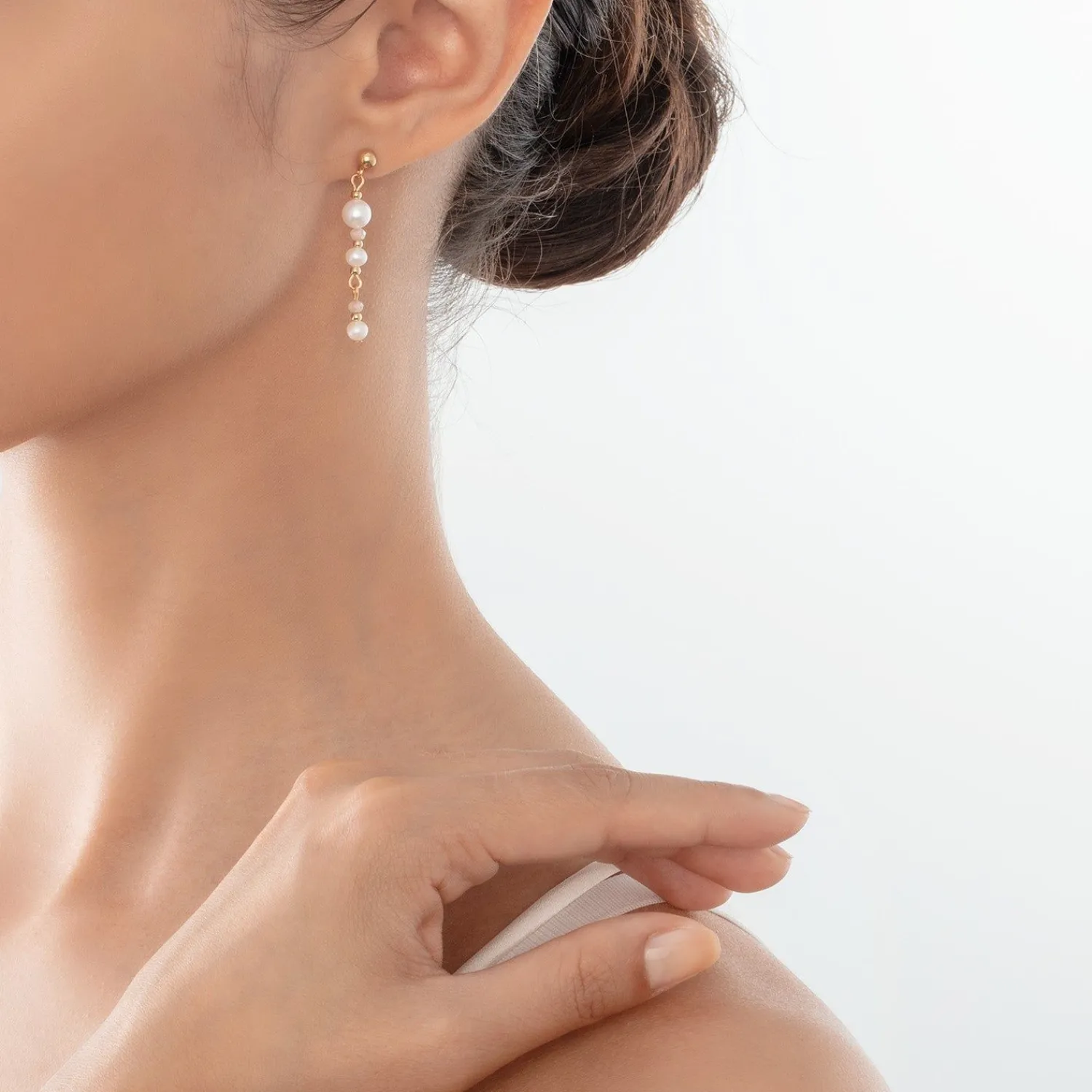 Entdecken Sie den faszinierenden Charme dieser bezaubernden Ohrhänger mit Süßwasserperlen und goldenem Edelstahl. Diese Ohrringe verleihen Ihrem Outfit eine elegante, stilvolle Note.