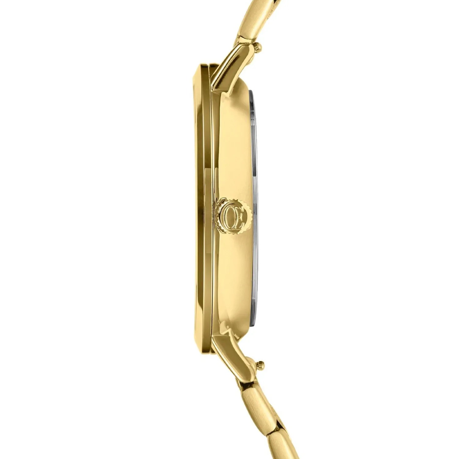 Das elegante, gelbgoldene Modell aus der neuen Statement-Uhrenserie ist eine atemberaubende Ergänzung für jedes Handgelenk. Das hochwertige Gehäuse mit einem Durchmesser von 40 mm in Kombination mit dem passenden Metallgliederarmband macht diese Uhr zum idealen Accessoire für jeden Look. Drei zarte Metallwürfelapplikationen im markentypischen Design von Coeur De Lion verleihen dem schimmernden Gold-Zifferblatt mit Sonnenschliff-Effekt eine raffinierte Note. Dieses exklusive neue Design kann sowohl von Frauen als auch von Männern getragen werden.