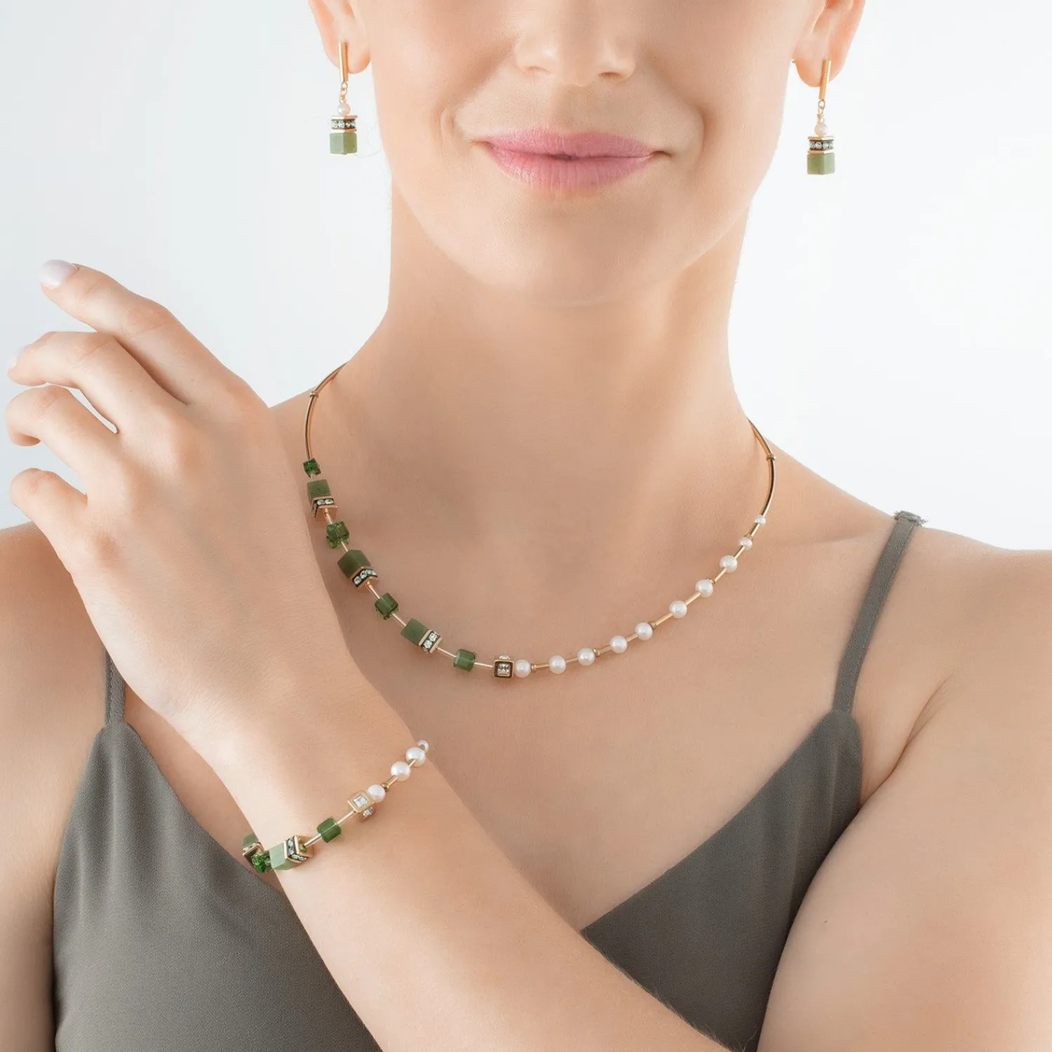 COEUR DE LION Armband Geocube® Fusion Precious Pearl Mix Gold-Grün- Geocube® Echtstein