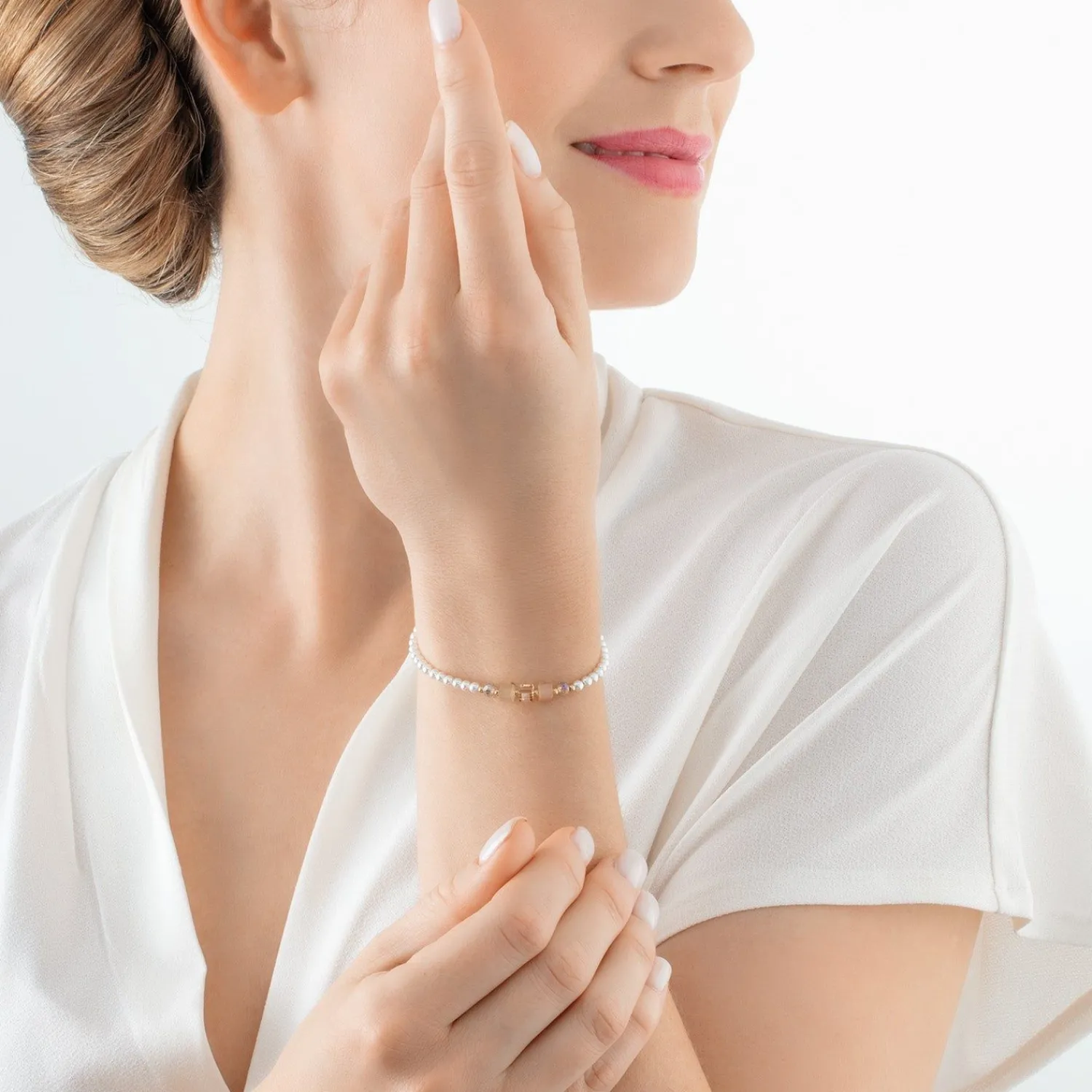 COEUR DE LION Armband Princess Pearls & Cubes Gold-Beige- Festliche Kollektion