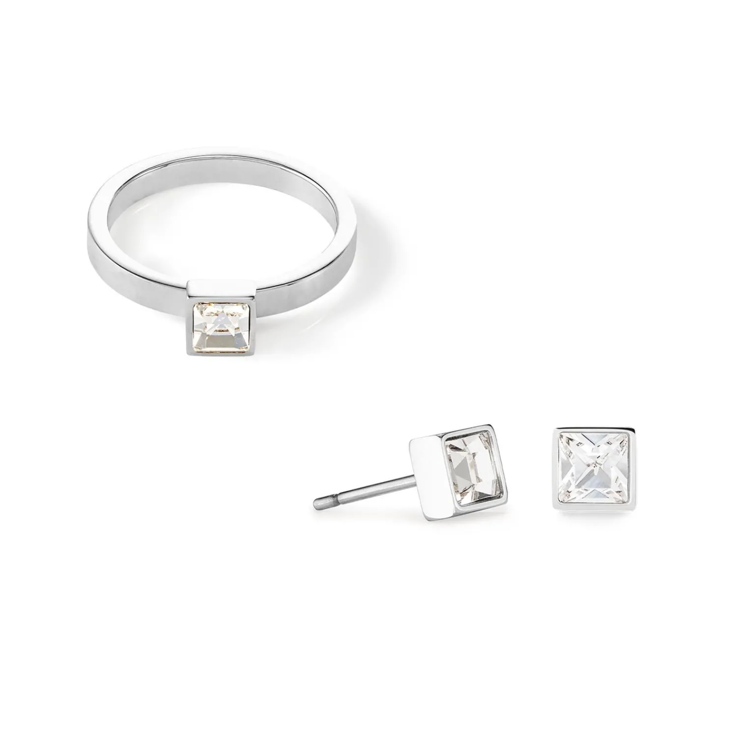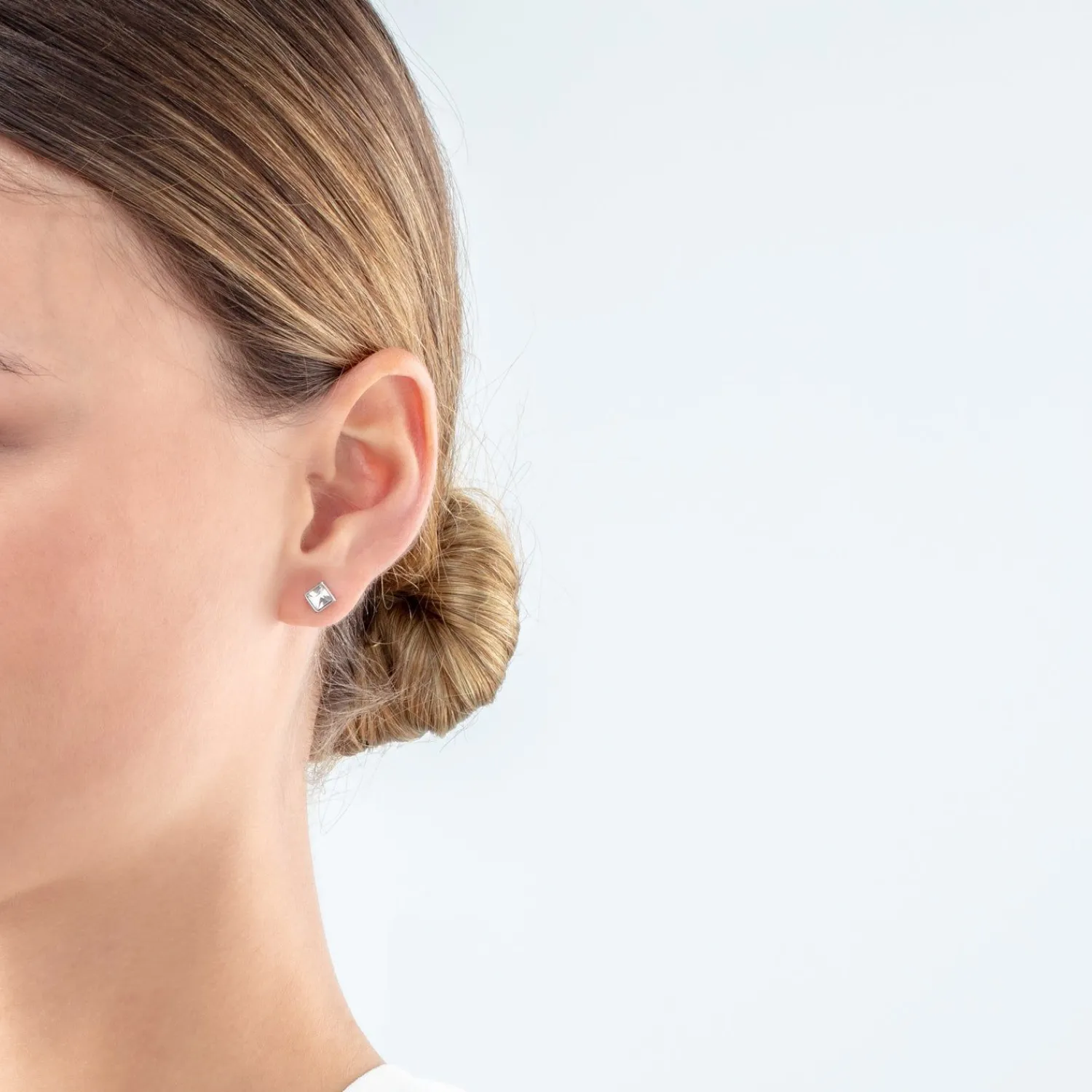 COEUR DE LION Brillante quadratische kleine Ohrringe aus Silberkristall- Kristallohrringe