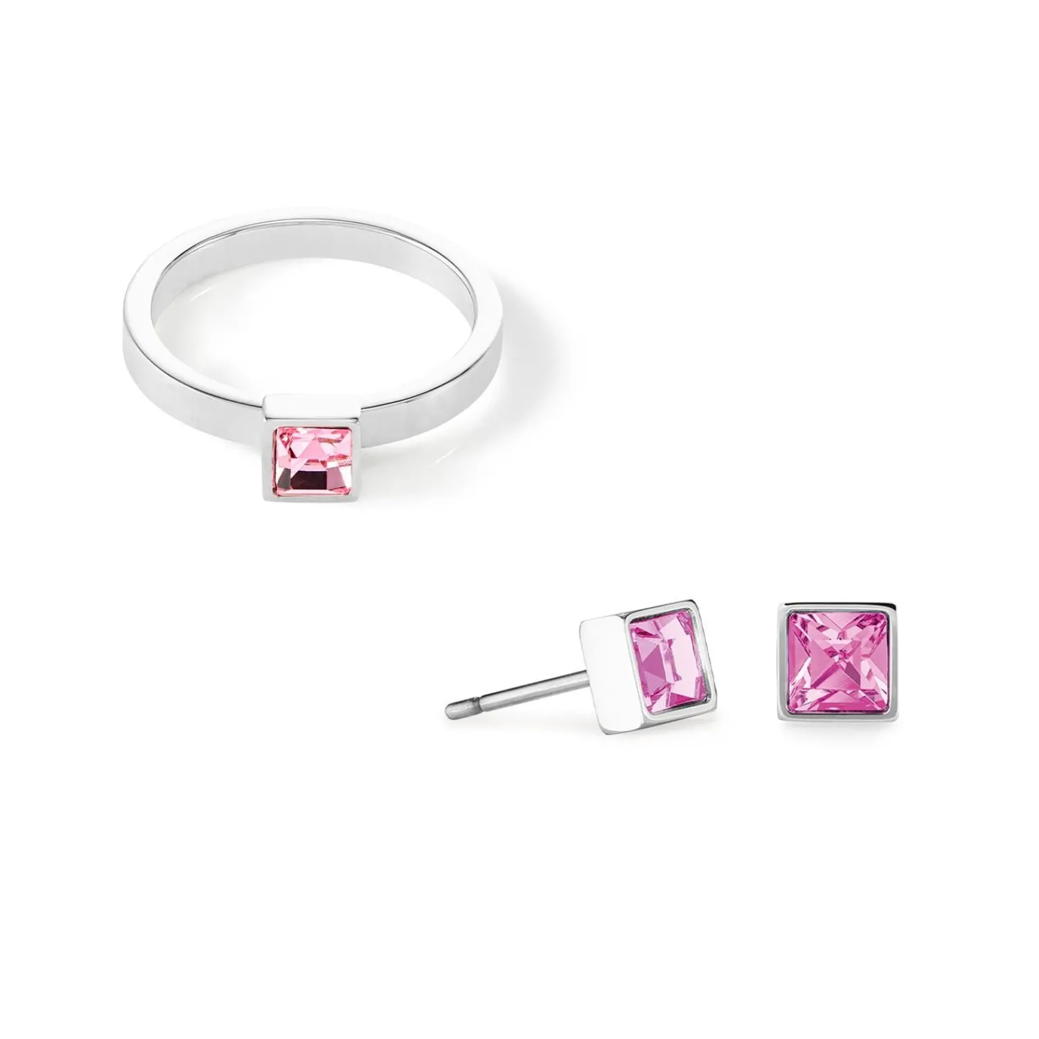 COEUR DE LION Brillante quadratische kleine Ohrringe Silber Rosa- Coeur Essentials