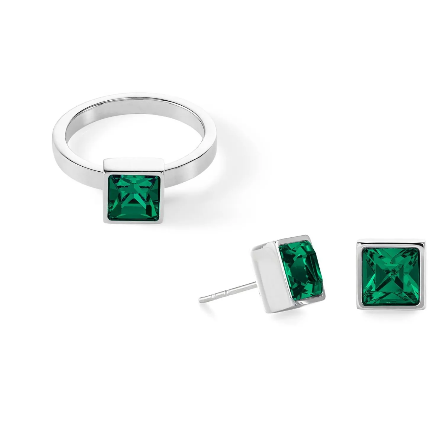 COEUR DE LION Brillanter quadratischer großer Ring Silber Dunkelgrün- Coeur Essentials