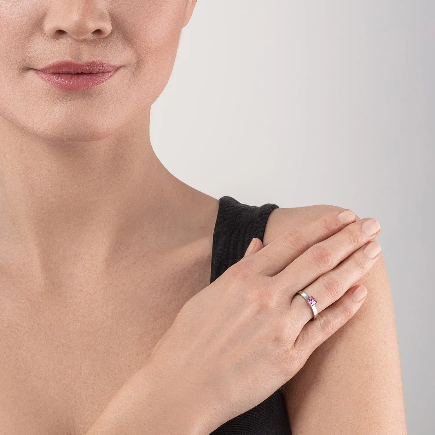 COEUR DE LION Brillanter quadratischer kleiner Ring Silber Hellrosa- Coeur Essentials