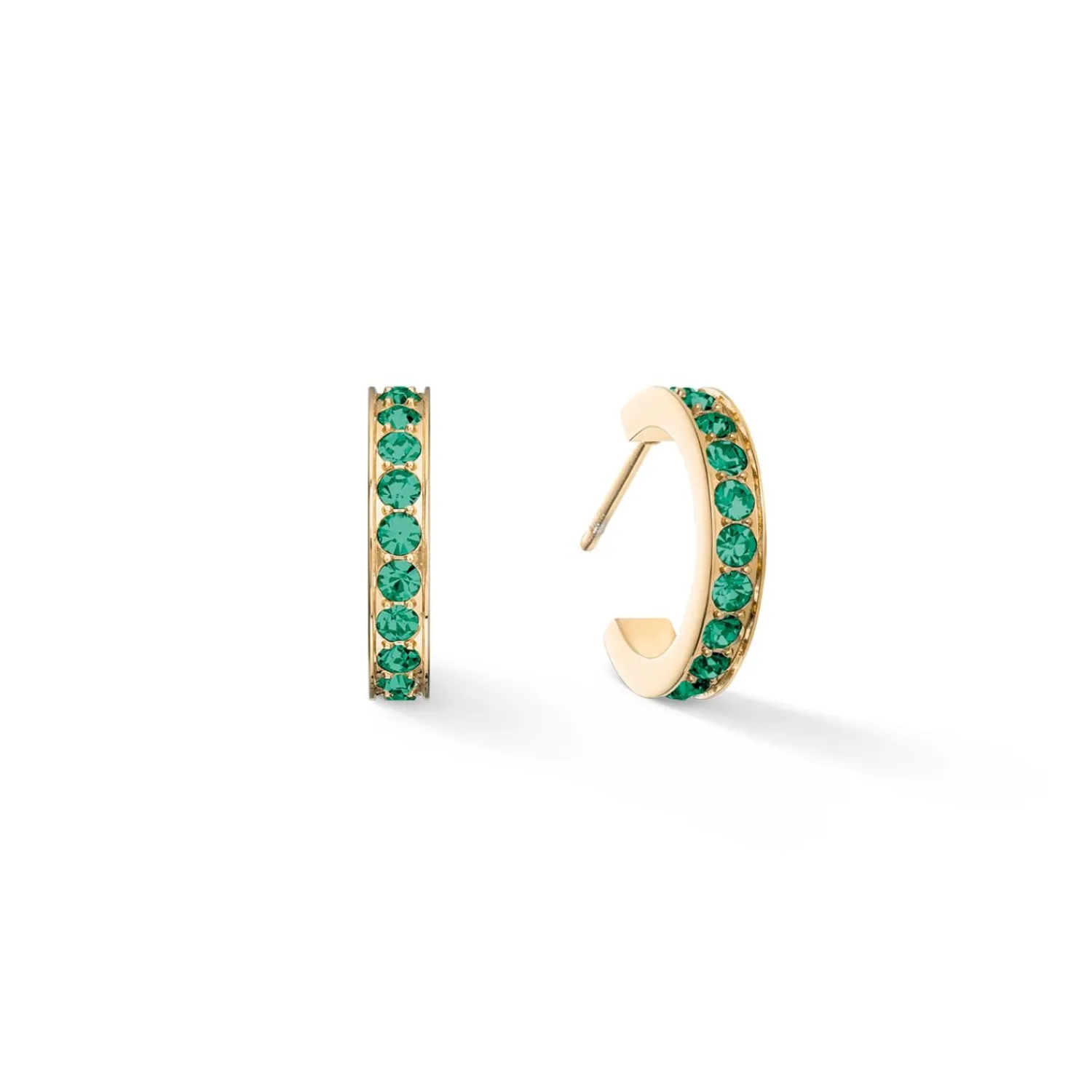 COEUR DE LION Creolen 15 Edelstahl & Kristalle Gold Dunkelgrün- Ohrstecker