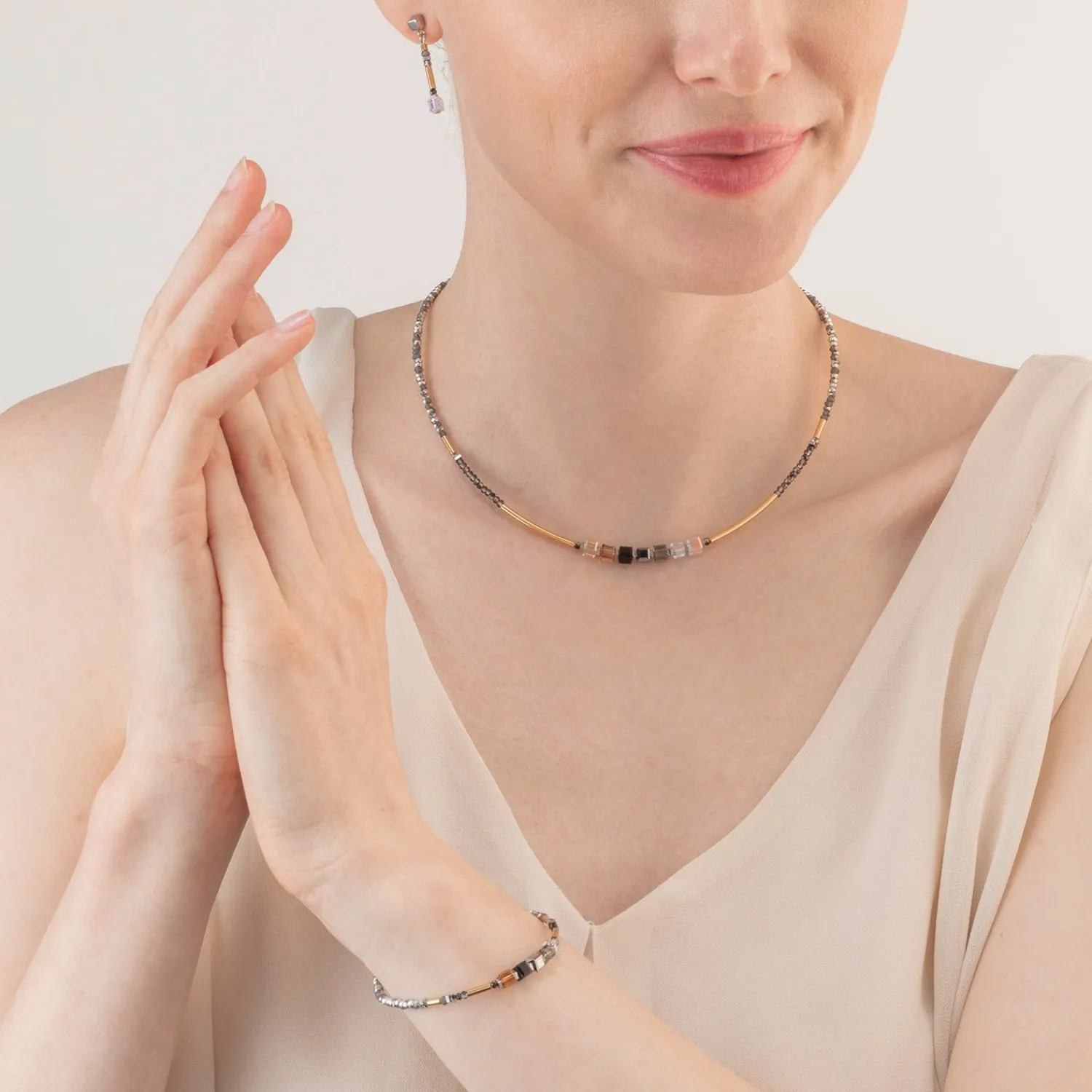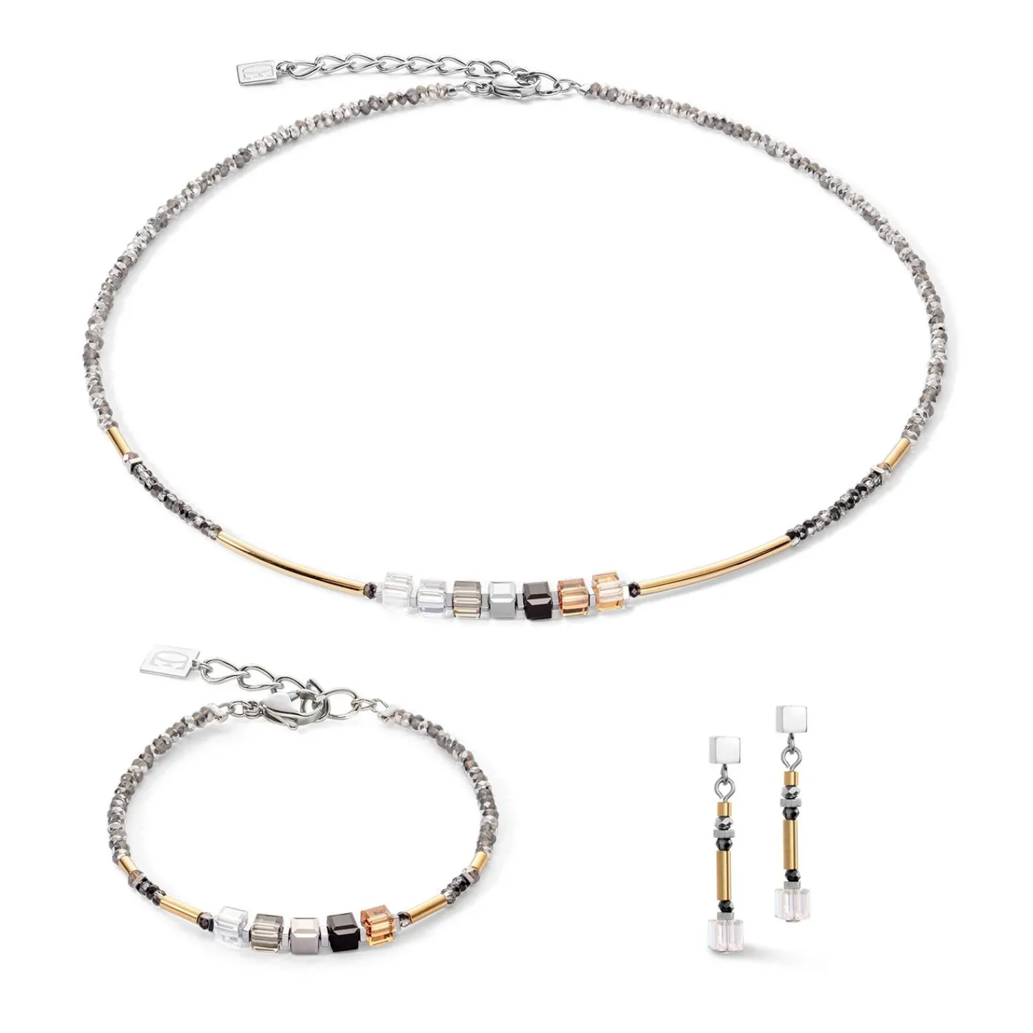 COEUR DE LION Cube Story Minimalistisches funkelndes Armband Graugold- Kristallarmbänder