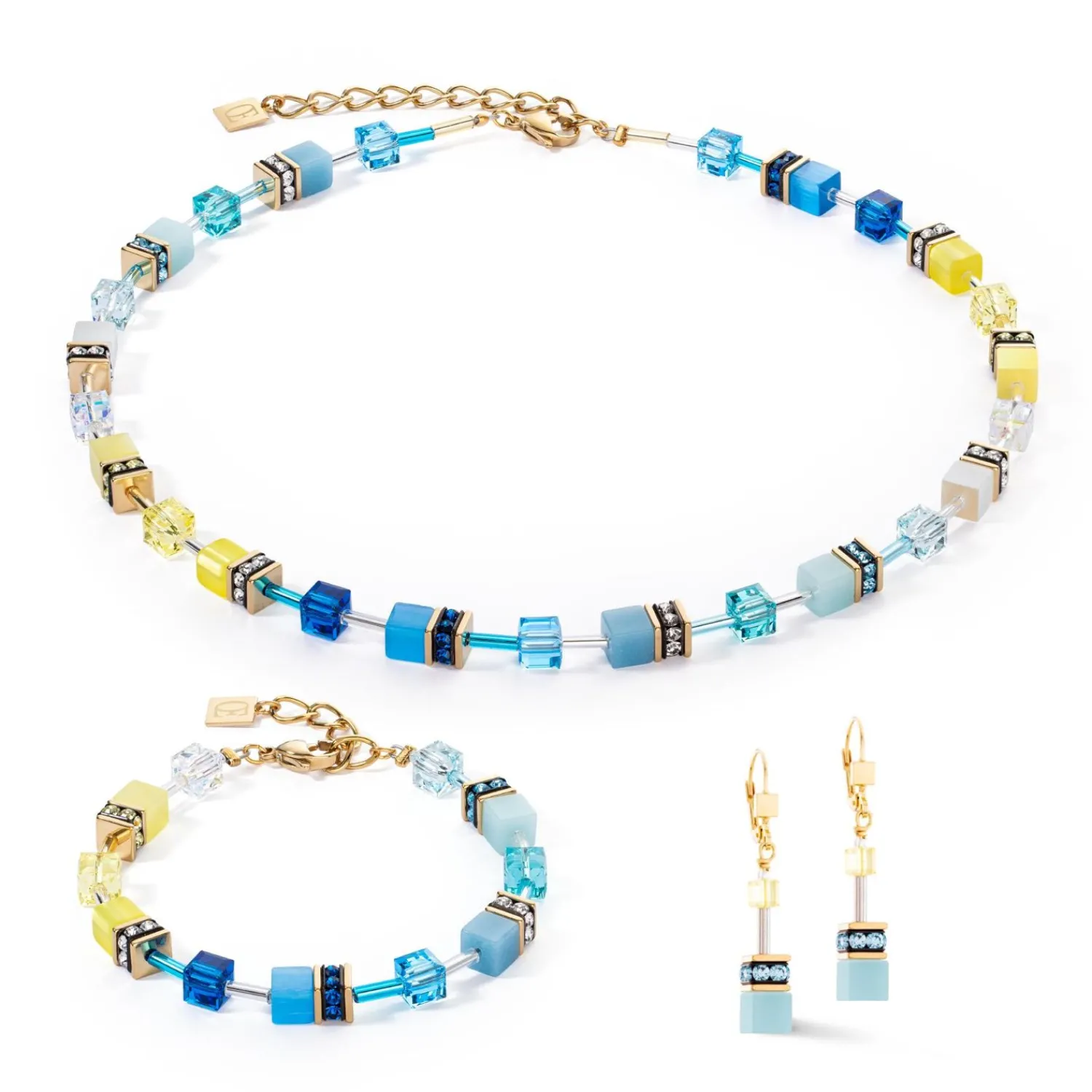 COEUR DE LION Geocube® Iconic Ohrringe Türkis-Gelb- Ohrhänger