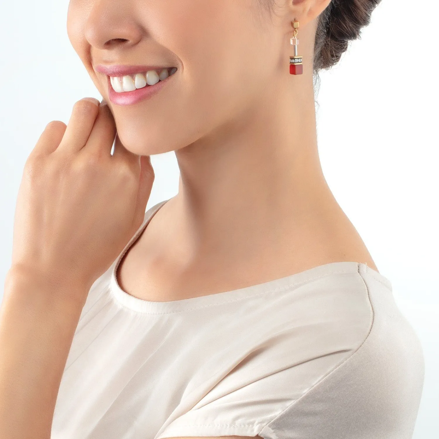 COEUR DE LION Geocube® Iconic Precious Ohrringe Rot-Beige- Ohrstecker