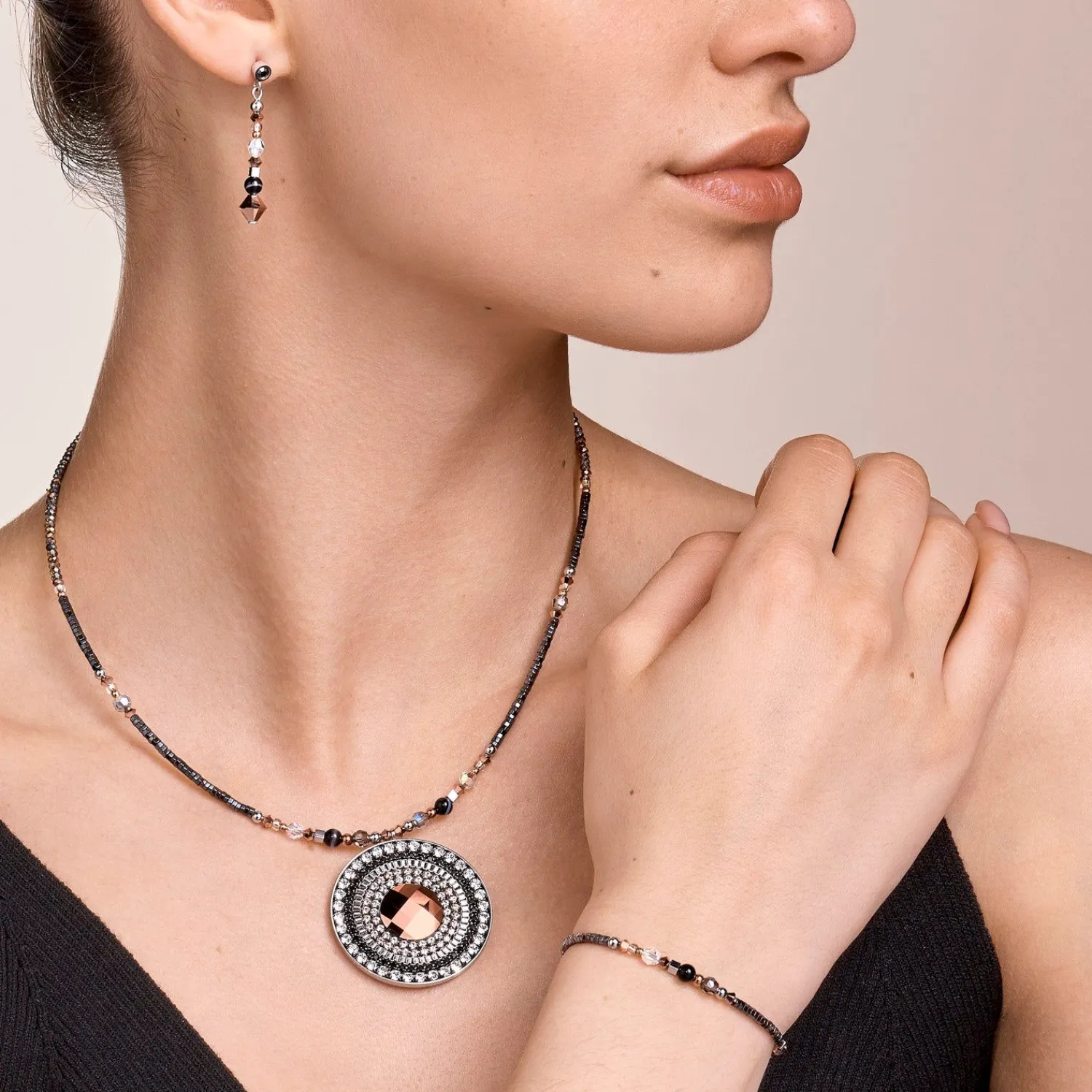 COEUR DE LION Halskette Amulett Kleine Kristalle & Gestreifter Onyx Grau-Kristall- Kristallhalsketten