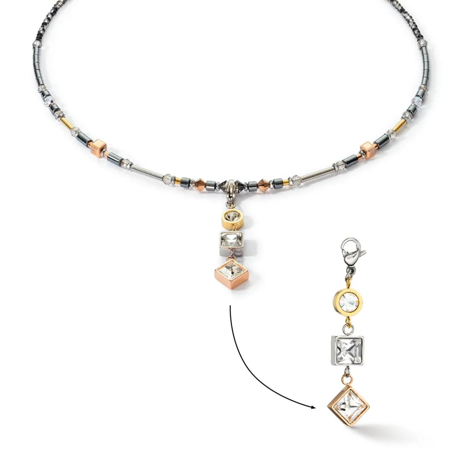 COEUR DE LION Halskette Brilliant Square Trilogy Austauschbarer Anhänger Tricolor- Halsketten mit Anhänger