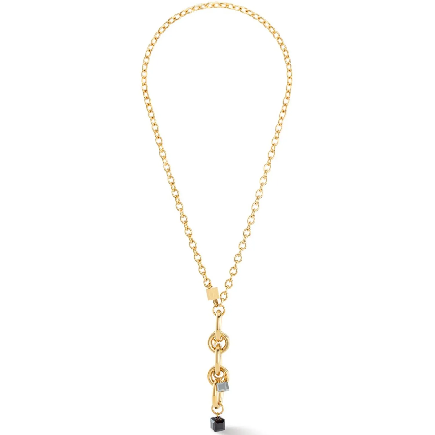 Entdecken Sie die atemberaubende klobige Halskette in Gold und Schwarz – ein echter Hingucker mit einer Kombination aus ovaler Kette und klobiger Kette als Y-förmiger Anhänger. Die klobige Kette ist mit faszinierenden Swarovski®-Kristallanhängern versehen. Diese Halskette bringt Minimalismus aufs Maximum und eignet sich nicht nur für die festliche Zeit.