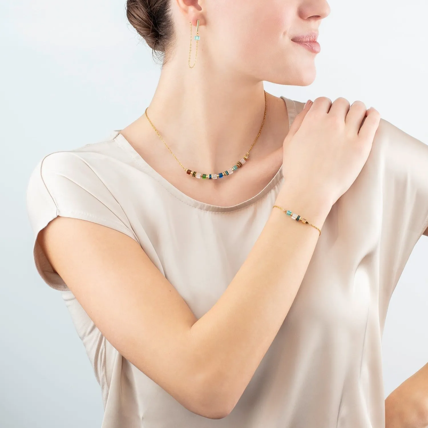 COEUR DE LION Halskette Mini Cubes & Kette Gold-Mehrfarbig- Edelsteinketten