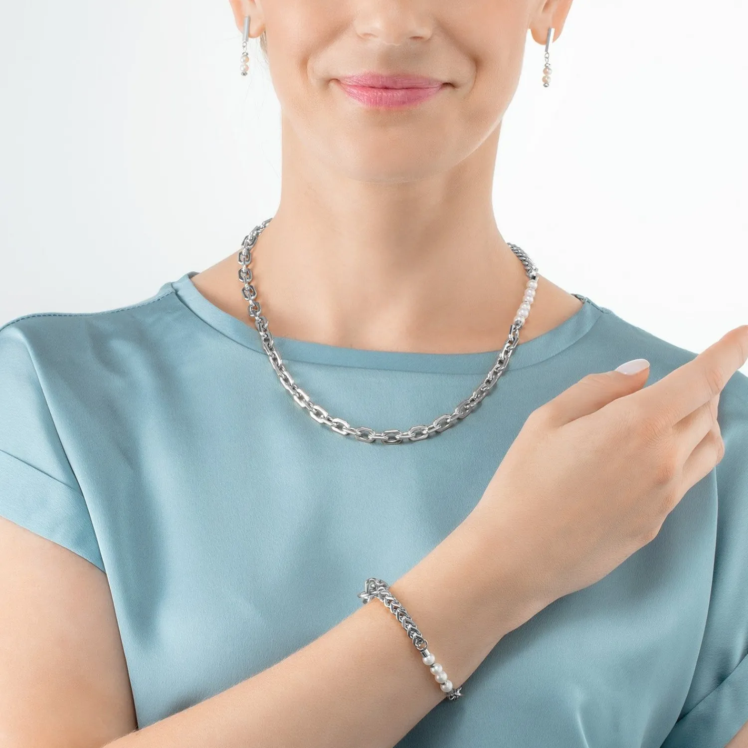 COEUR DE LION Halskette Shape Shifter Süßwasserperlen Silber- Multiwear-Halsketten