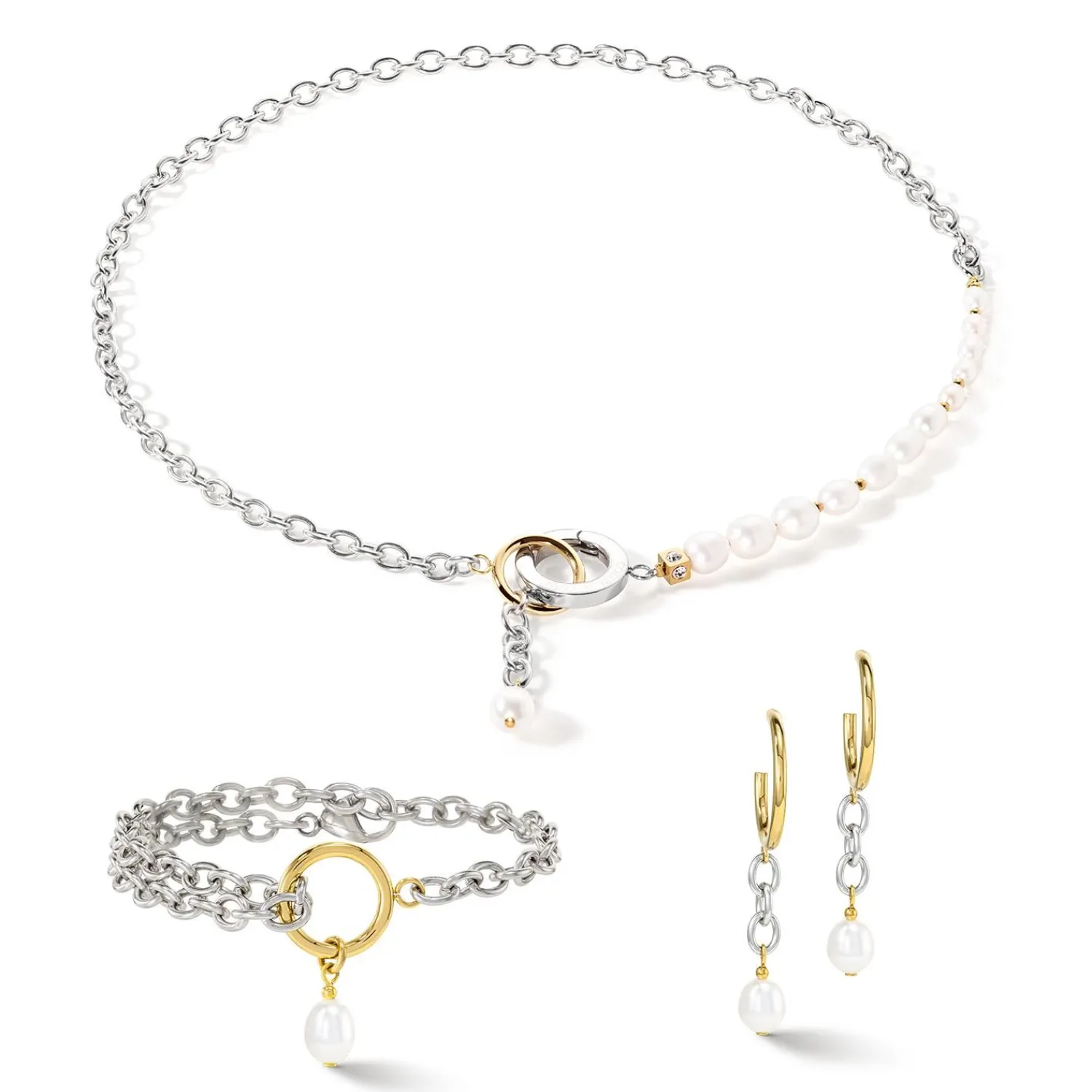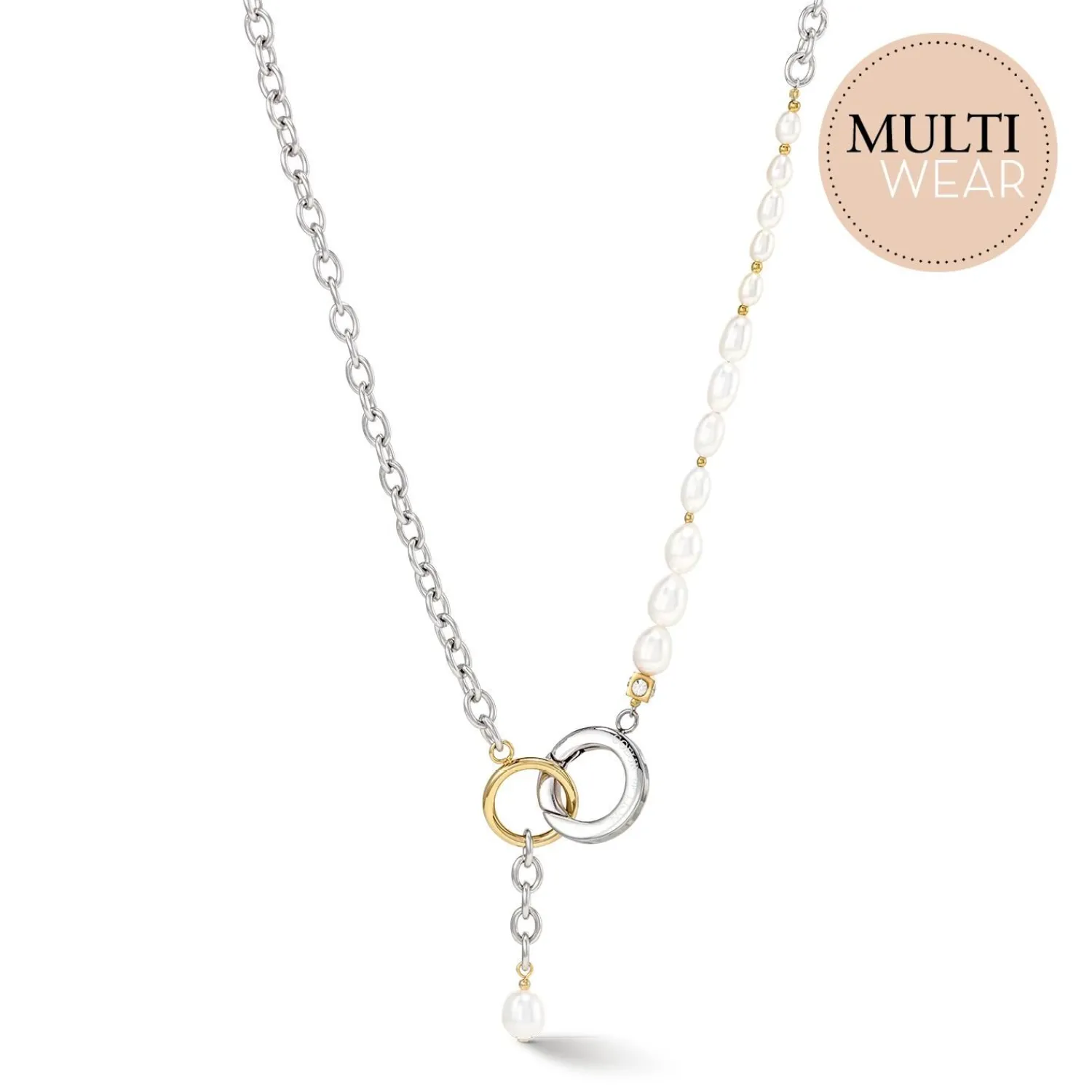 Was könnte schöner sein als Schmuck mit echten Süßwasserperlen? Dieses elegante zweifarbige Design besticht durch sein asymmetrisches Zusammenspiel aus edlen Perlen und einer silberfarbenen Edelstahlkette. Zu den besonderen Hinguckern zählen der neue dekorative Rundverschluss und die raffinierte Multiwear-Option: Das Armband kann als Verlängerung verwendet werden, sodass die Halskette sowohl lang als auch kurz getragen werden kann.