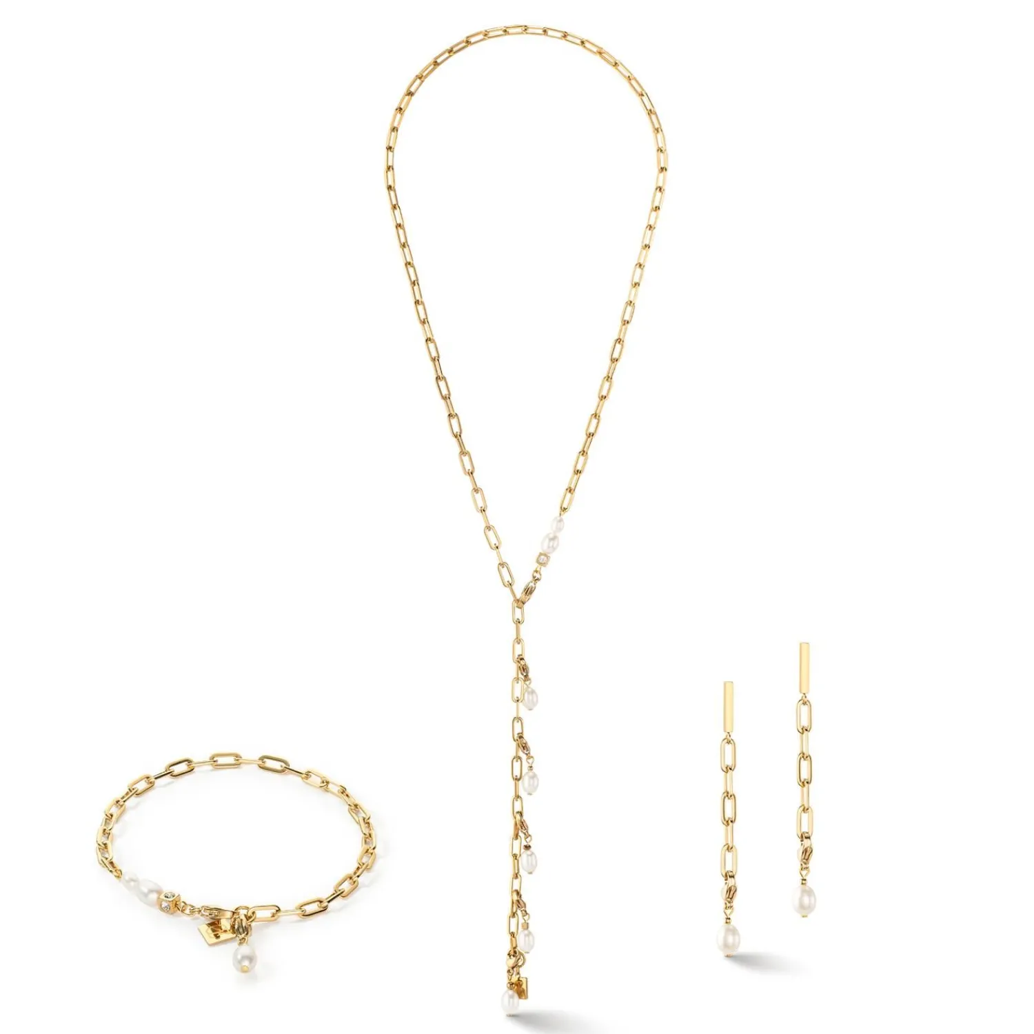 COEUR DE LION Moderne Halskette mit Süßwasserperlenanhängern in Gold- Perlenketten