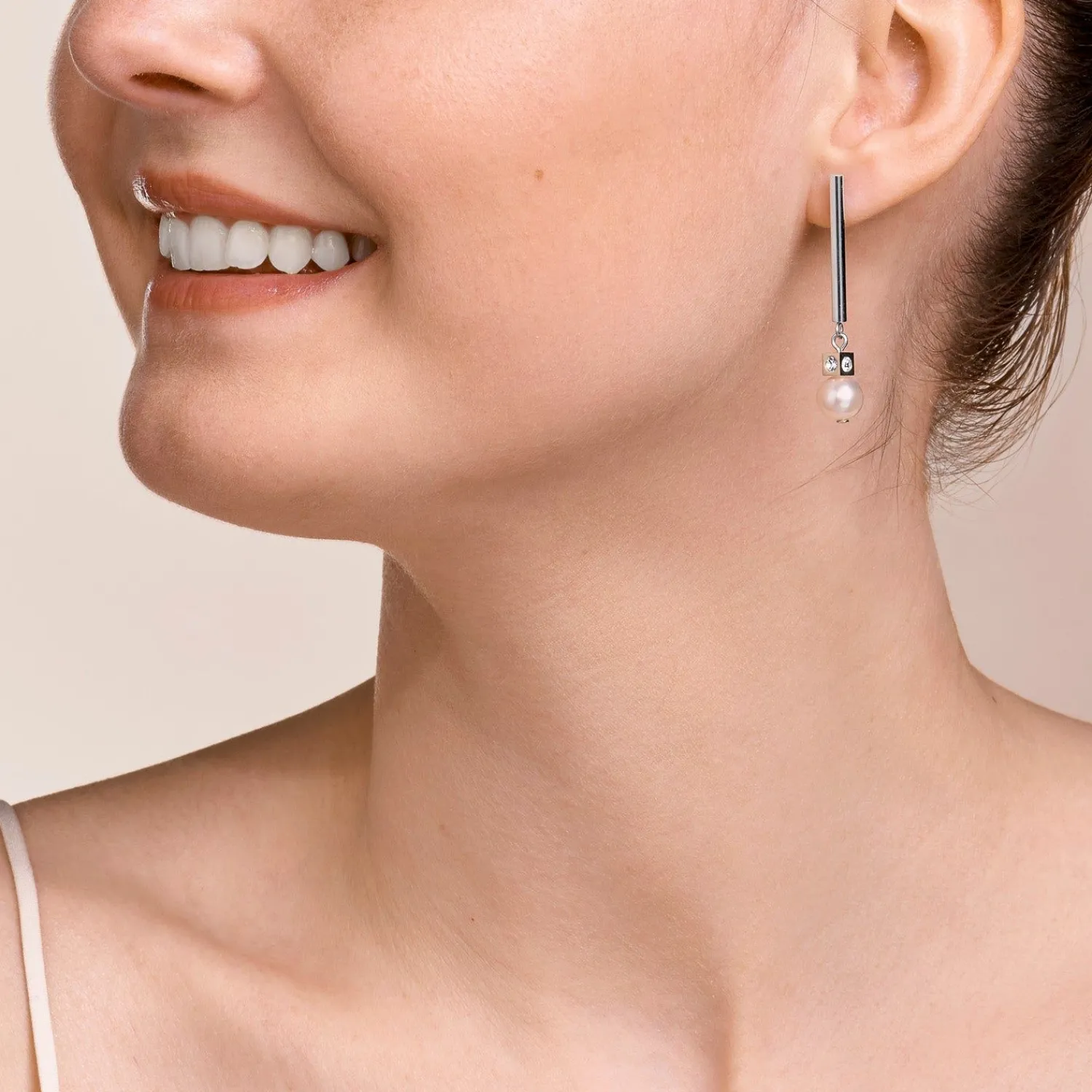 COEUR DE LION Ohrringe Asymmetrie Süßwasserperlen & Edelstahl Weiß-Silber- Perlenohrringe