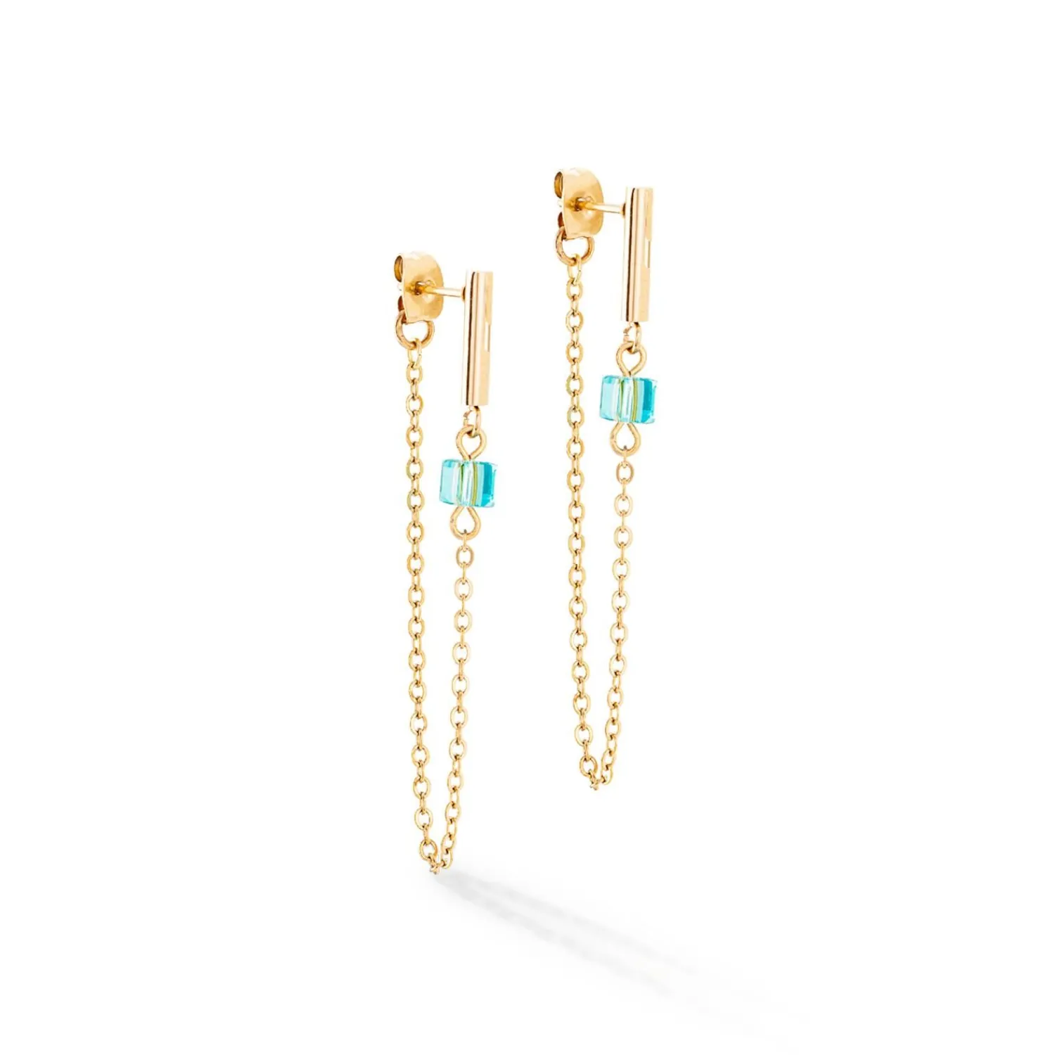 COEUR DE LION Ohrringe Mini Cubes & Chain Gold-Mehrfarbig- Ohrstecker
