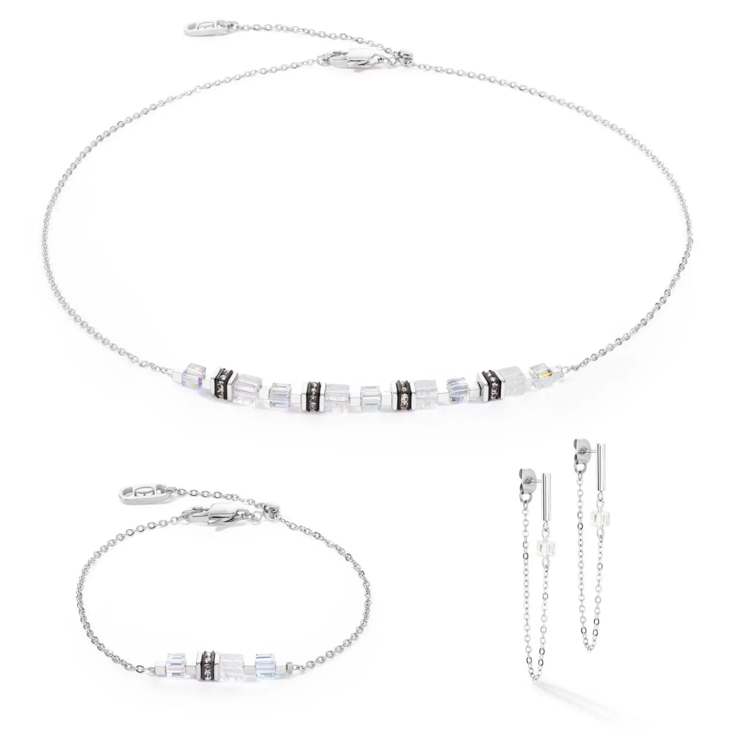 COEUR DE LION Ohrringe Mini Cubes & Kette Silber-Weiß- Ohrstecker