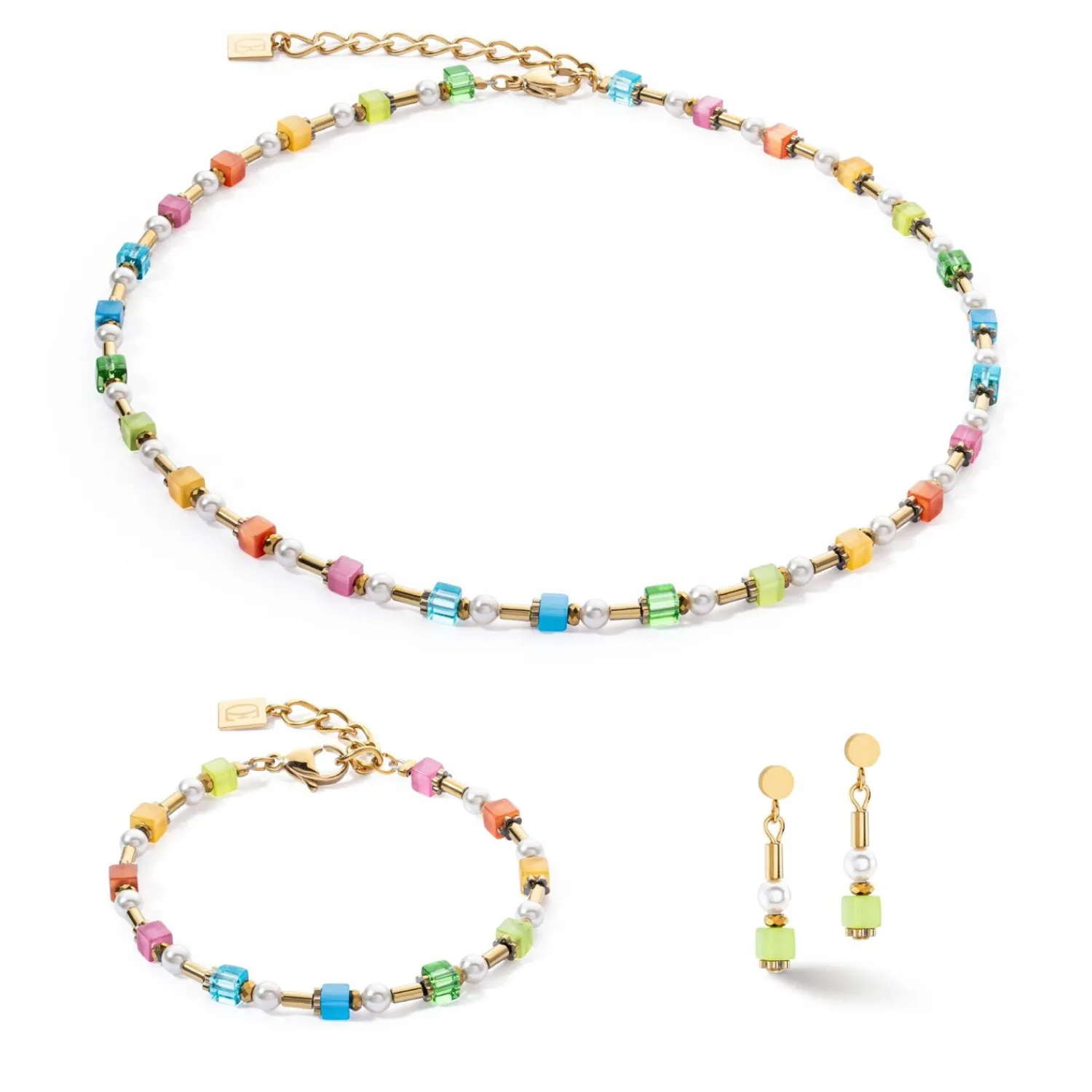 COEUR DE LION Ohrringe Mini Cubes & Pearls Mix Gold-Regenbogen- Ohrstecker