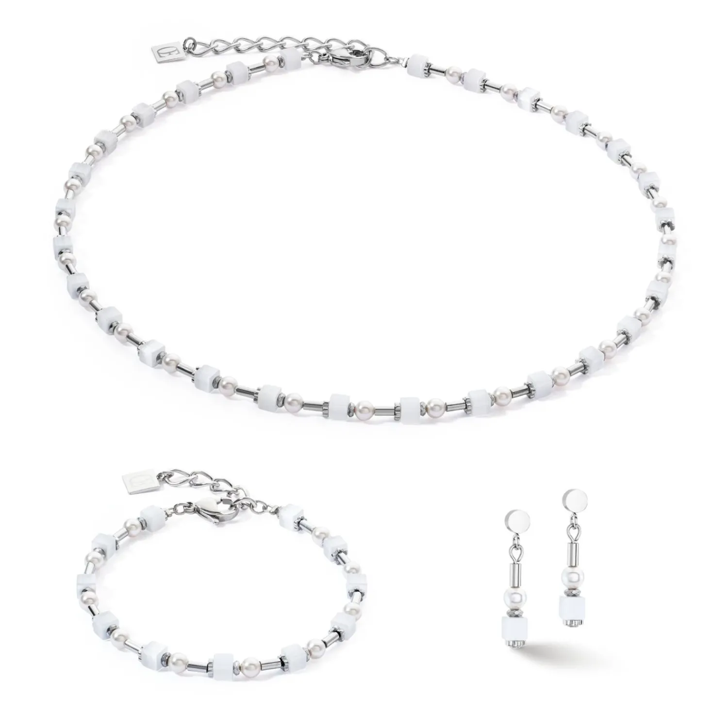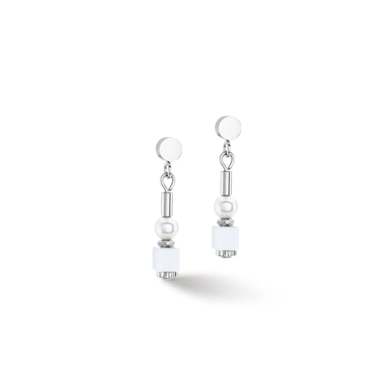 COEUR DE LION Ohrringe Mini Cubes & Pearls Mix Silber-Weiß- Ohrstecker