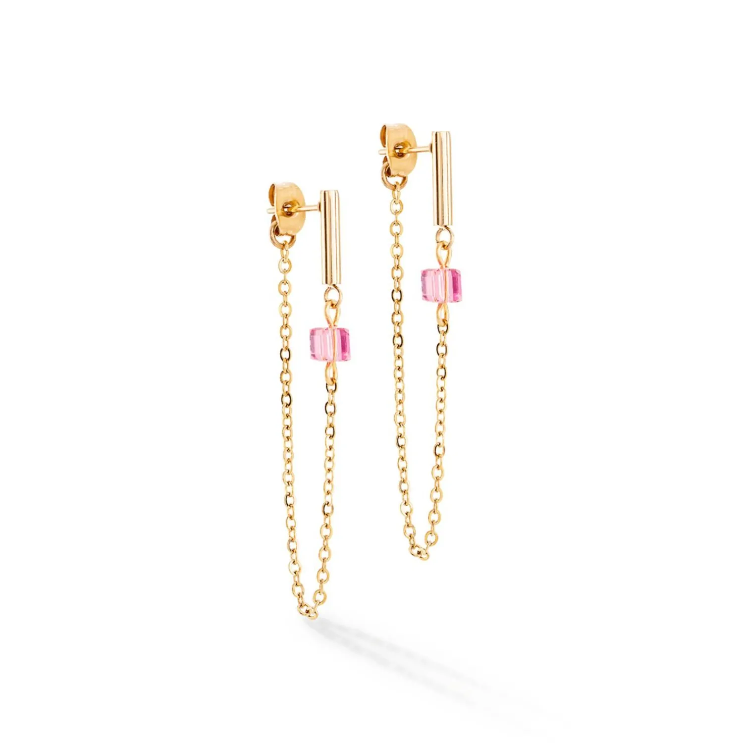 Die Mini Cubes Chain Ohrringe in Gold-Pink sind moderne Ohrringe im Loop-Design.