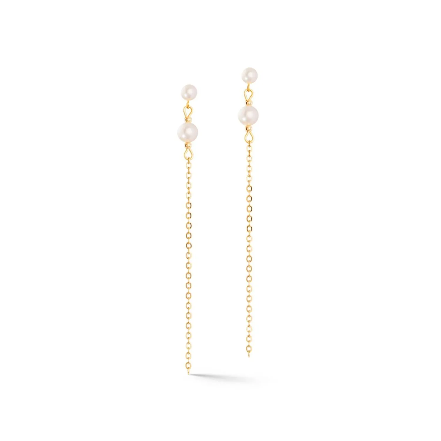 Zarter Ohrring aus Gold mit Süßwasserperle in leichter Kettenoptik.