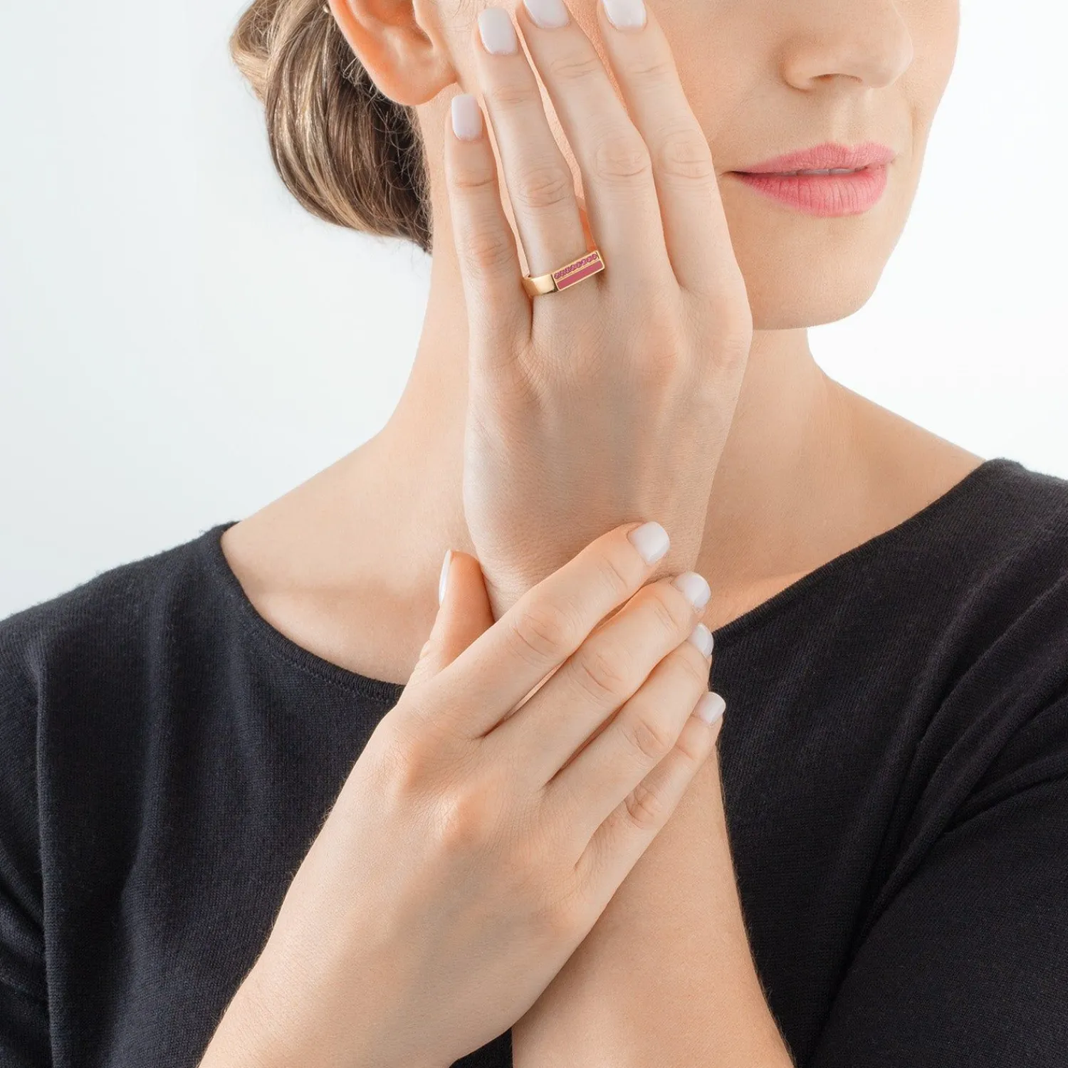 COEUR DE LION Ring Quadratische Streifen Gold-Rosa- Mix&And&Match-Ringe