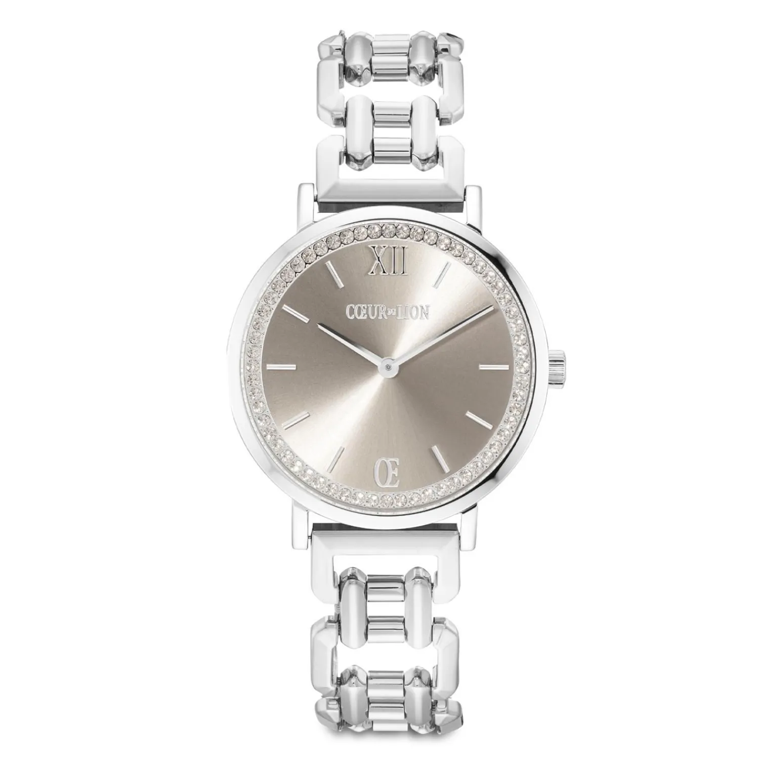 COEUR DE LION Sehen Sie sich das runde, funkelnde, anmutige Greige-Statement-Silber an- Uhren