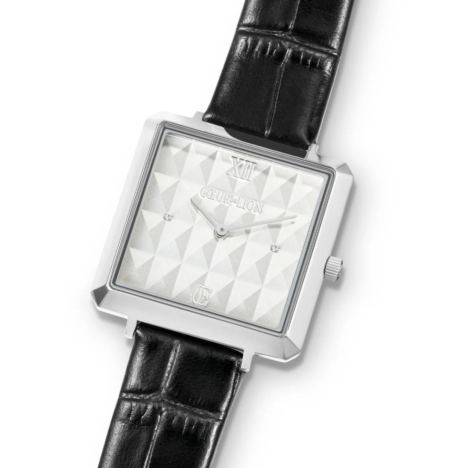 Entdecken Sie die beliebte, ikonische Cube-Uhr im neuen, aufregenden Spike-Design, das nicht nur die Zeit präzise anzeigt, sondern auch eine Aura von Glamour ausstrahlt. Das besondere Highlight dieser Serie ist das facettierte 3D-Zifferblatt. Das silberne Gehäuse in Kombination mit dem schwarzen Lederarmband in Kroko-Optik verleiht der Uhr einen lässig-eleganten Look. Passender Schmuck aus der Spikes-Serie. Die Uhr verfügt über ein hochwertiges 316L-Edelstahlgehäuse – 32 x 32 mm und eine Gehäusehöhe von nur 7,5 – 7,8 mm, ein erstklassiges japanisches Quarzwerk mit 1,55-V-Batterie (Laufzeit 3 Jahre).